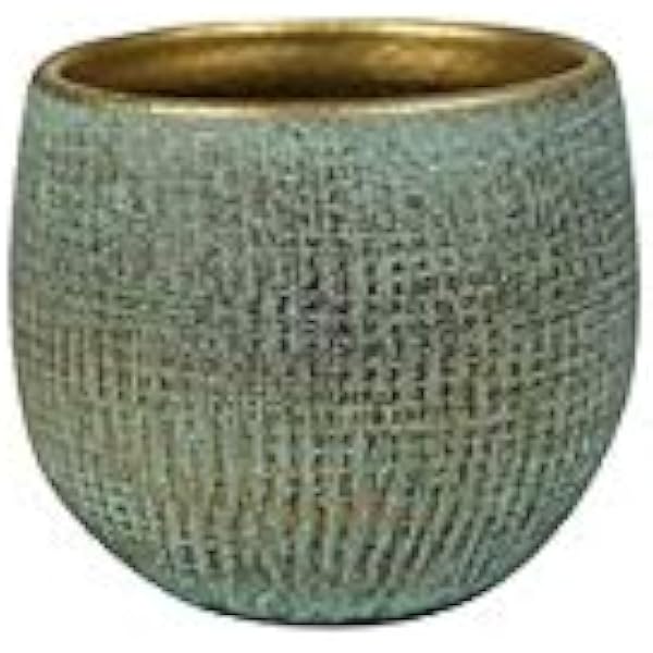 Green Gold Ceramic Plant Pots Set 2 17 14cm Amazon De Garden